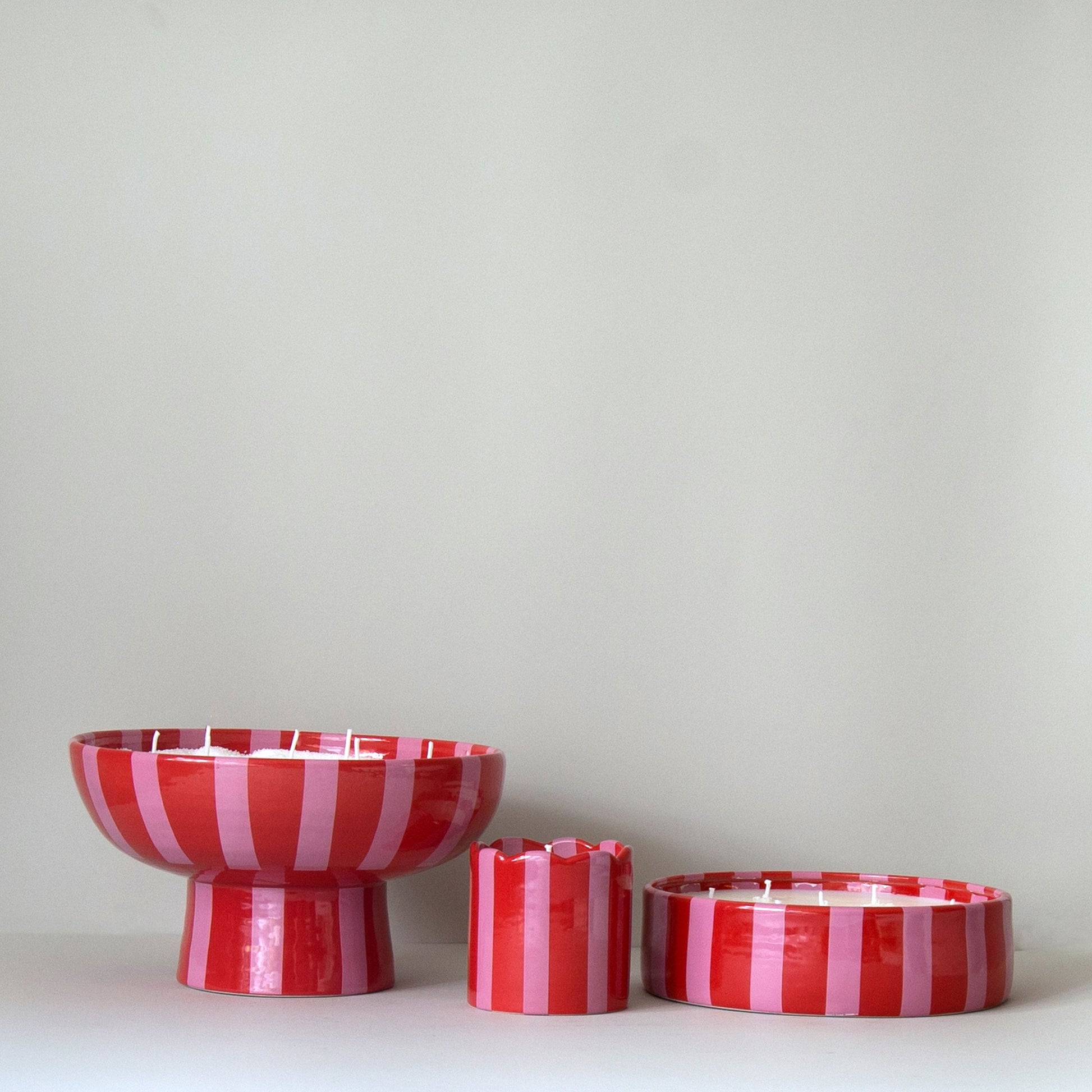 Handcrafted candle in a ceramic container with an elegant black and white striped design. With multiple wicks, it provides warm and sophisticated lighting. Perfect for creating a cozy and decorative atmosphere in any space.