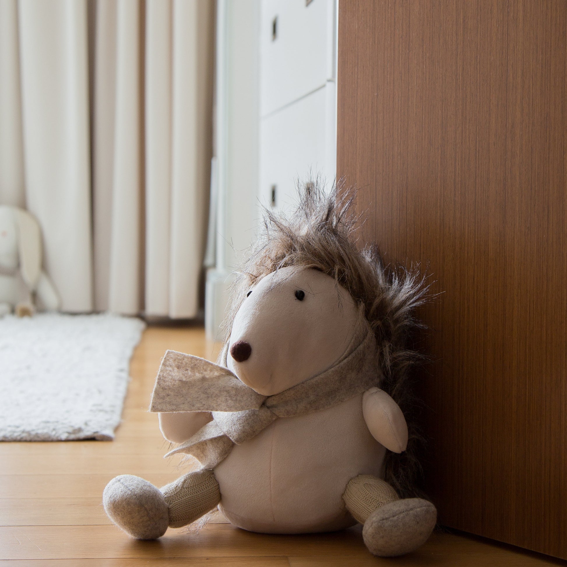 Fabricado en tela suave con detalles cuidadosamente elaborados, Hugo combina diseño encantador con practicidad. Su peso es perfecto para evitar que las puertas se cierren de golpe, protegiendo los dedos de los niños y evitando ruidos molestos.